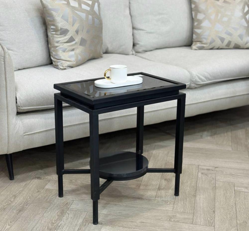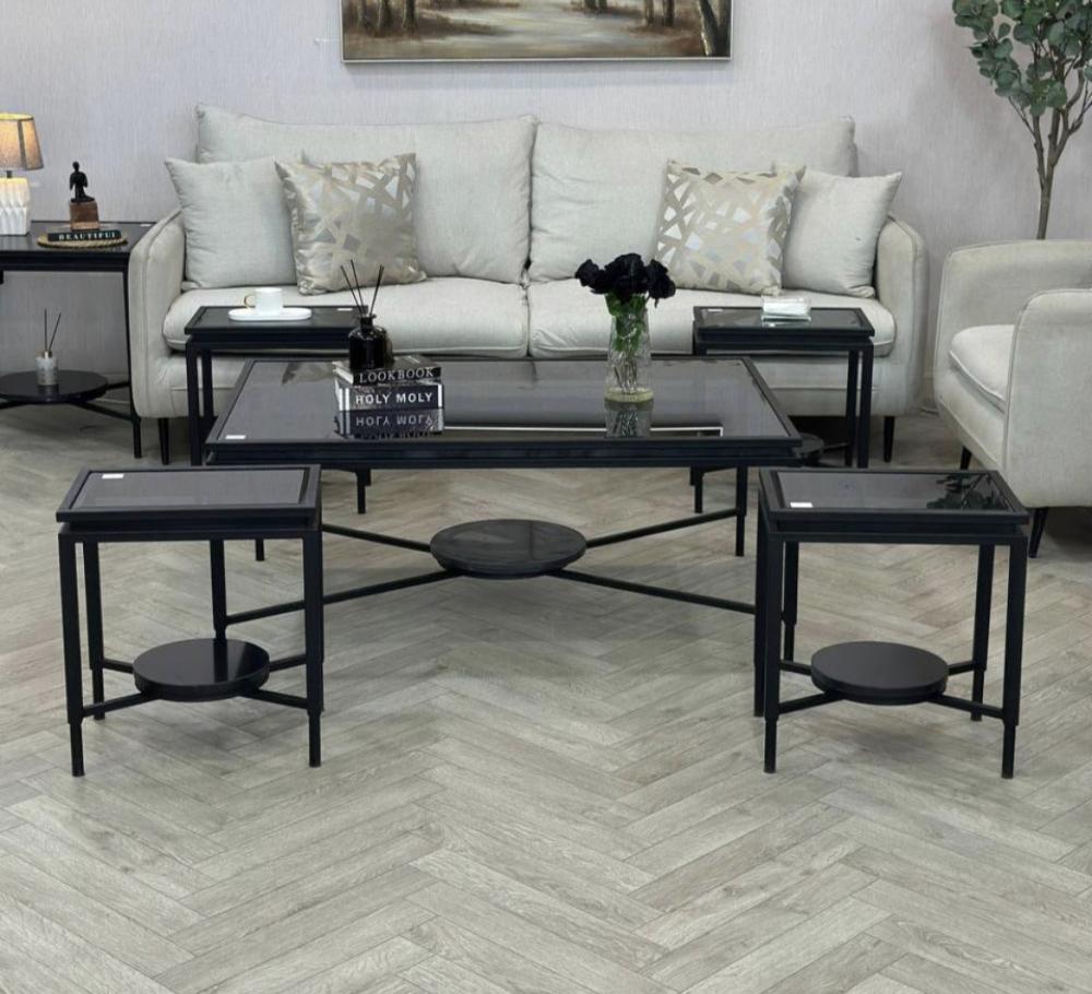 طقم طاولات ضيافة دورين سطح زجاج أسود :