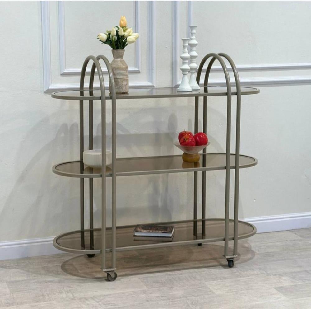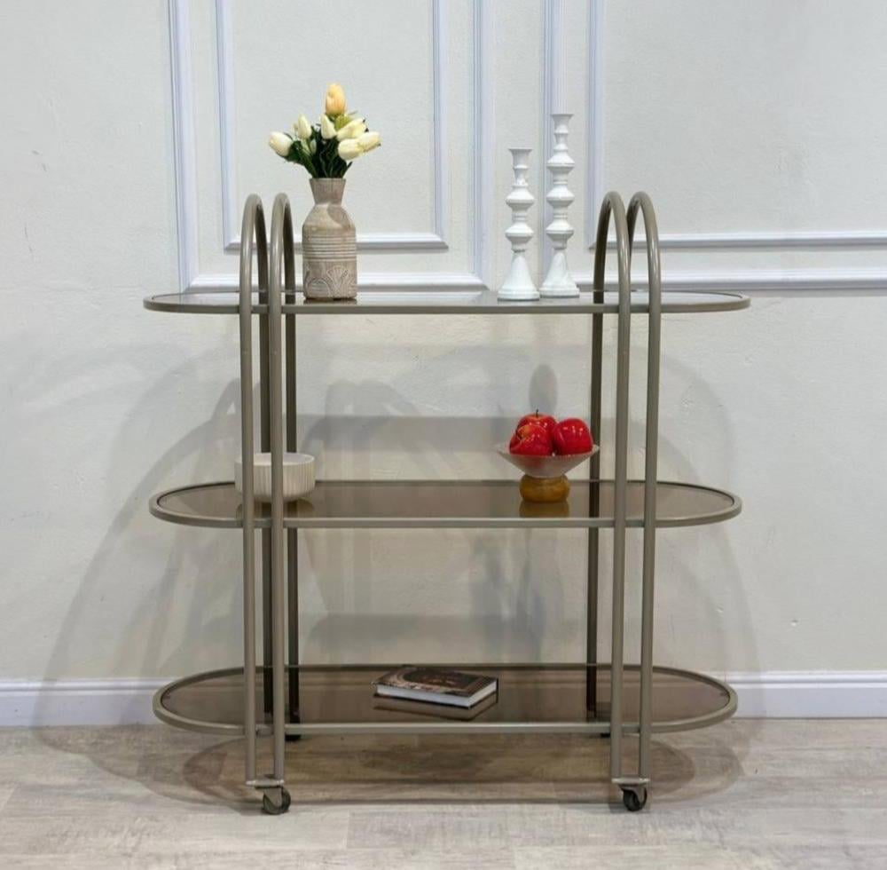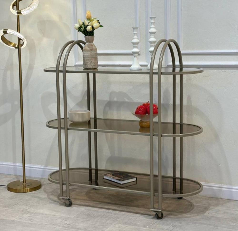 عربية تقديم بيضاوي 3 دور لون شمباني زجاج بني :